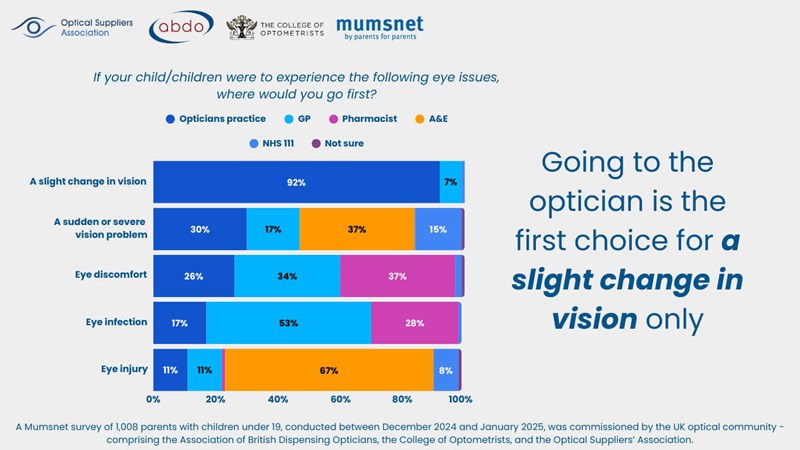 The national survey also revealed that the majority of parents would take their child to often busy hospital A&E departments rather than a High Street practice in cases of an optical emergency.