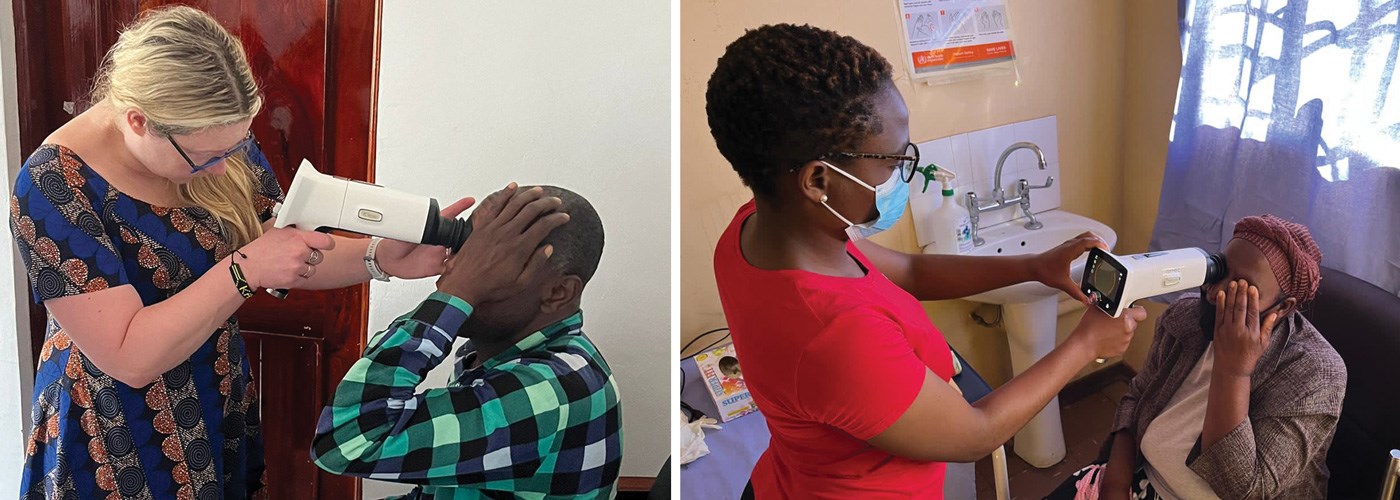 Figure 1: Diabetic eye screening in Tanzania using the Optomed camera (left) and in Eswatini (right).