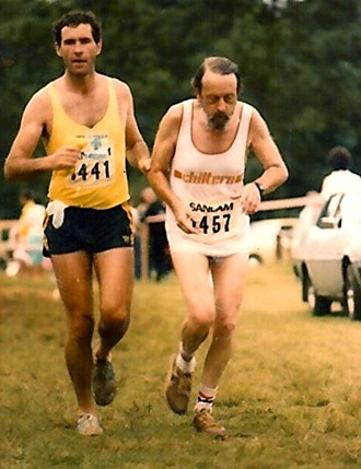 Geoff (left) running Hillcrest Marathon, South Africa, 1982.