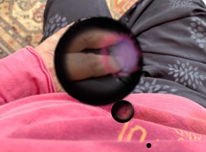 At this stage, the patient noticed the gas bubble continuing to reduce in size, occupying less than half of their visual field. The patient reported the appearance of a new, distinct mobile bubble that had separated from the primary bubble. Over subsequent days, additional smaller bubbles branched off before gradually diminishing in size. Although these satellite bubbles eventually resolved, they remained a prominent feature of the patient’s subjective experience, offering insight into the dynamic nature of intraocular gas resolution. Figures 9 and 10 shows what the patient was visualising during this period.