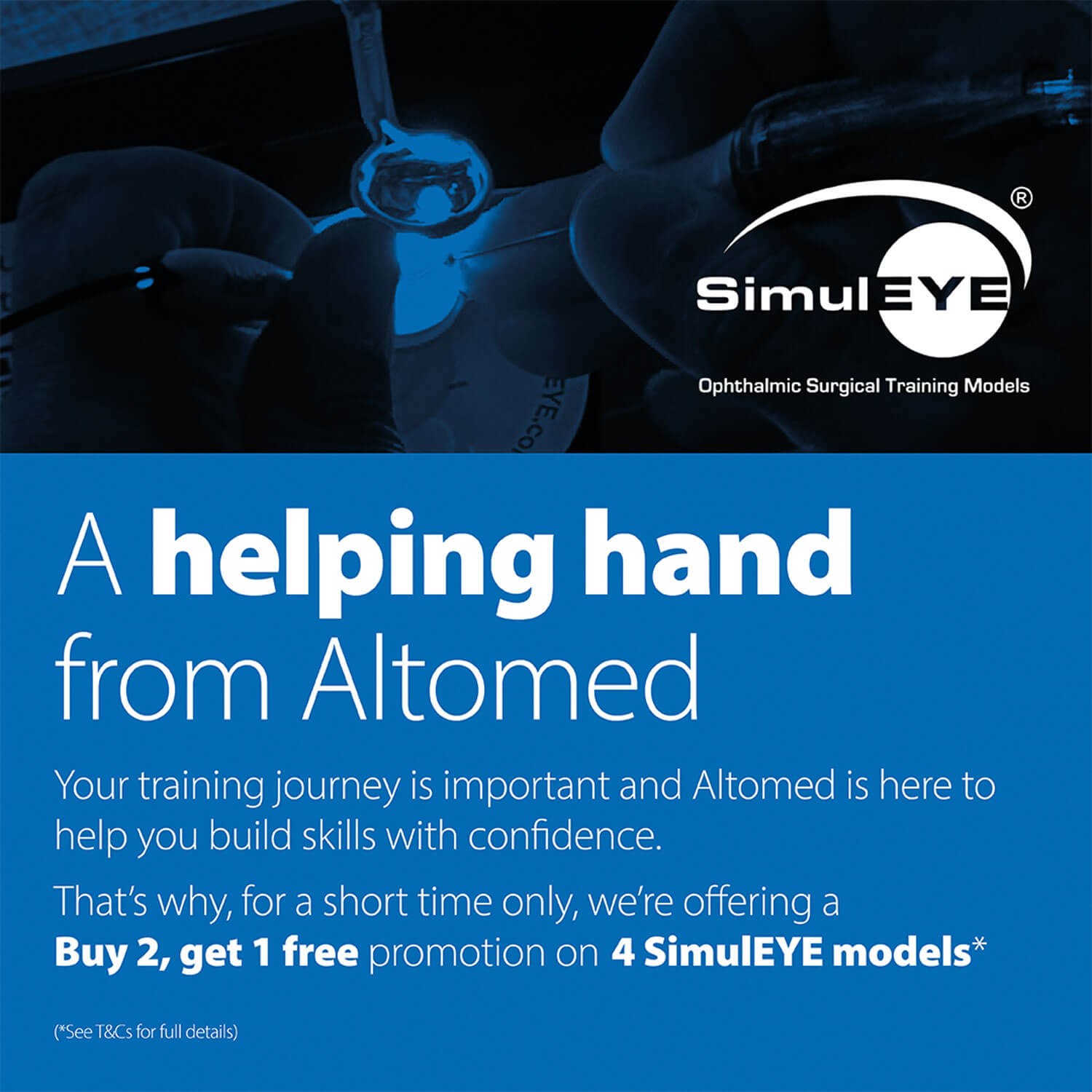Your training journey is important and Altomed is here to help you build skills with confidence. That’s why, for a short time only, we’re offering a Buy 2, Get 1 Free promotion on 4 SimulEYE models (see website for full T&Cs).