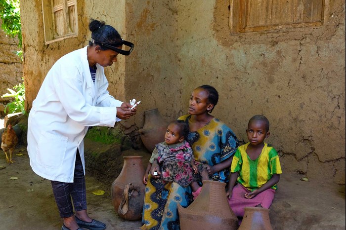 Selamimesh, and her children Lidya and Meaza, receive treatment for trachoma infection.