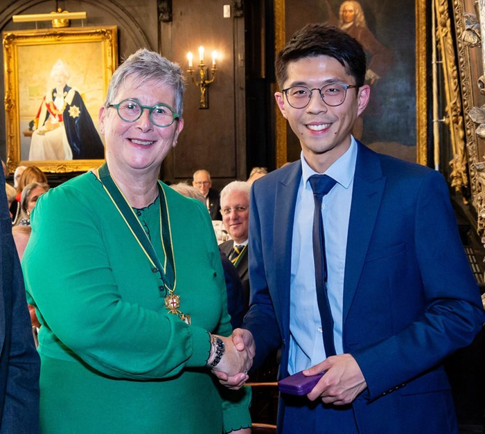 The Master presents a WCSM Master's Medal to Fabian Yii of the University of Edinburgh.