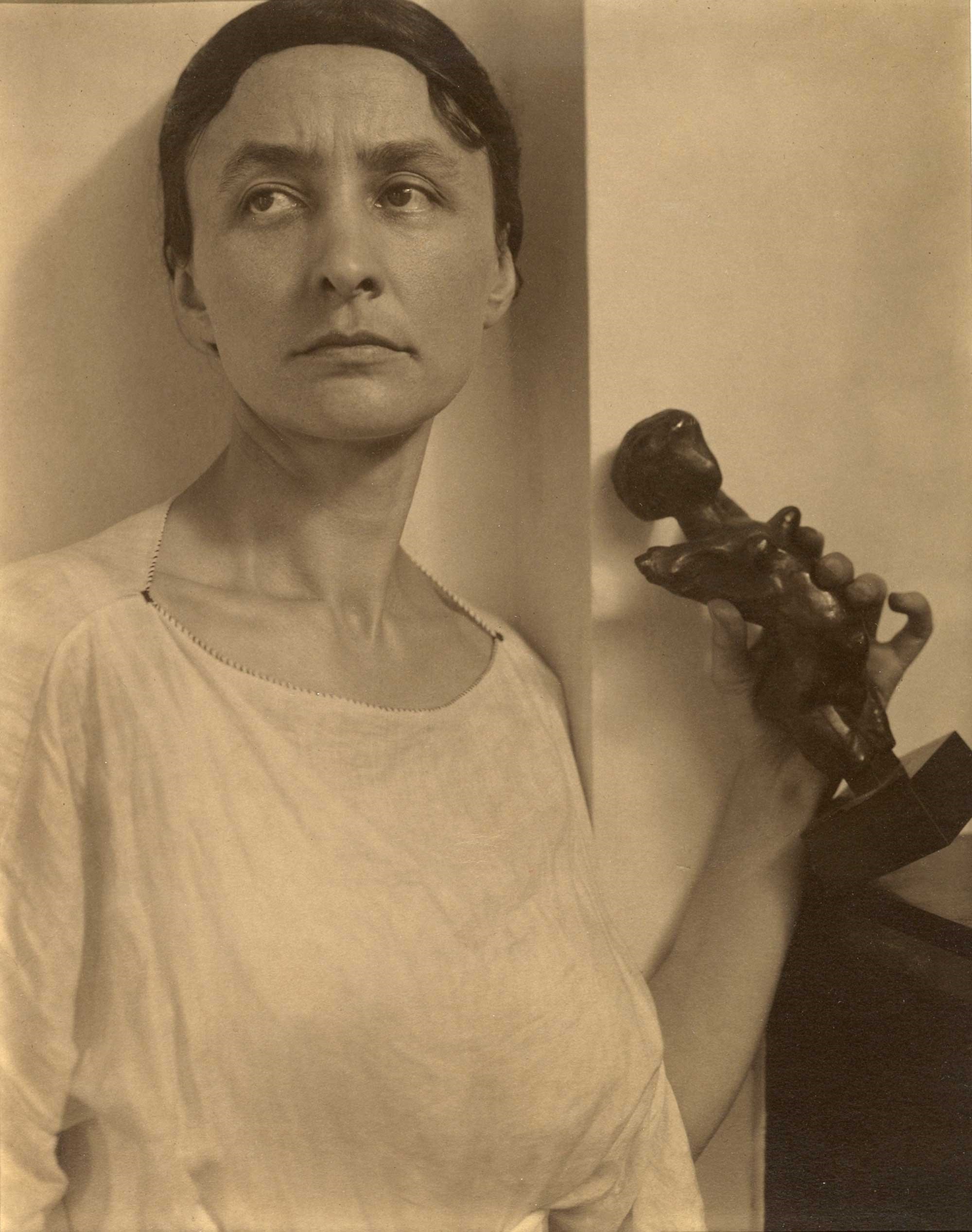 Georgia O’Keeffe with Matisse Sculpture, photographed by Alfred Stieglitz (1864–1946) (Public Domain Image).
